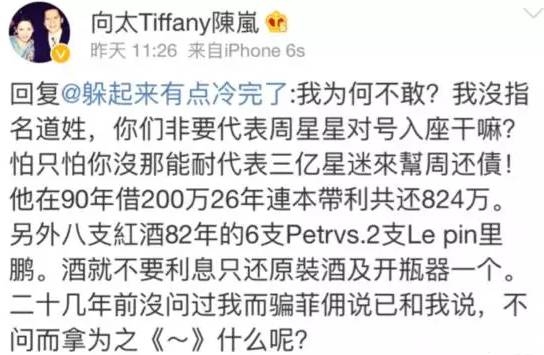 向太陈岚再撕周星驰:200万借款未还,偷8瓶名贵红酒,背后真相曝光