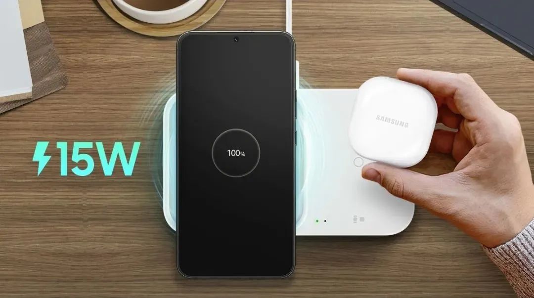 充电头网之前对三星等品牌的双区域无线充电充电器进行了拆解分析。考虑到越来越多的用户手持支持无线充电的设备,三星最近推出了一款集充电功能于一体的无线充电底座。举例来说,当我们外出时携带手机和无线耳机,回家后只需将它们一起放在底座上,就能实现同步充电。