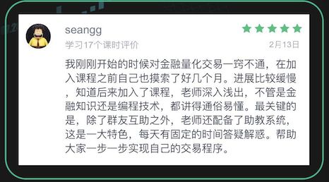 课程成果明显。有小白学员,仅用2个月就学会了编程,还运用到了工作中。没编程基础的设计师,1个多月就开发出交易系统,有了实盘收益。这些都证实了课程实用且有效。