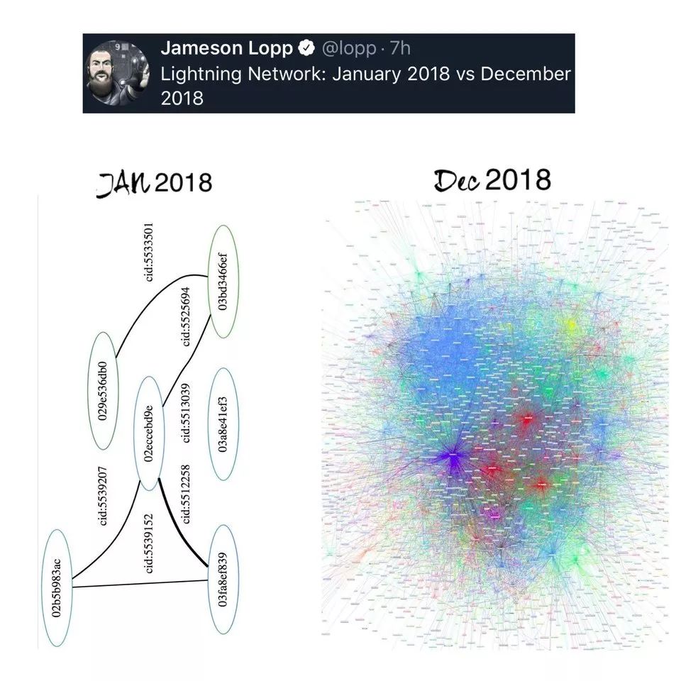 2018 年,状态通道中的比特币网络增长得很快。这种增长显示出状态通道这一领域具有自身的发展活力。它的快速发展给区块链整体带来了影响。